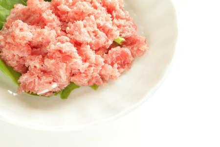 Japanese food, tuna fish minced with copy space