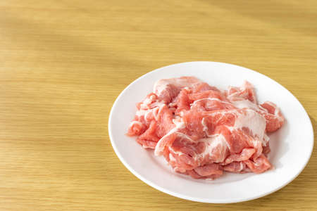 freshness pork slice on wooden plate for cooking ingredient