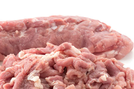 Sliced pork on white background