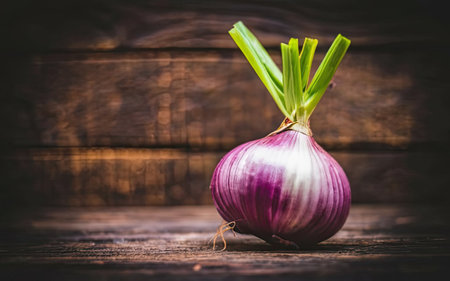 onion on a wooden background with copyspace for your text