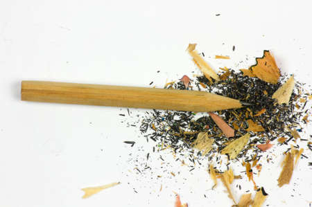 A captivating close-up shot of a sharpened pencil tip, revealing fine shavings and dust particles. This image captures intricate details and textures, perfect for creative projects.
