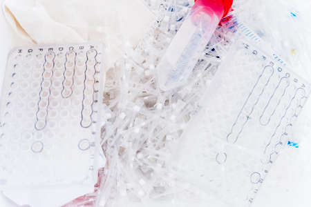 Danger laboratory chemical and medical waste. Plastic waste and ecology
