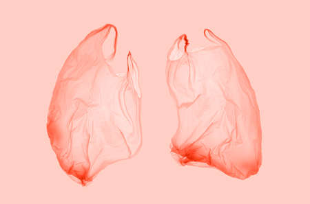 Pink plastic bag in pink light in form of lungs. World pneumonia day. Covid.