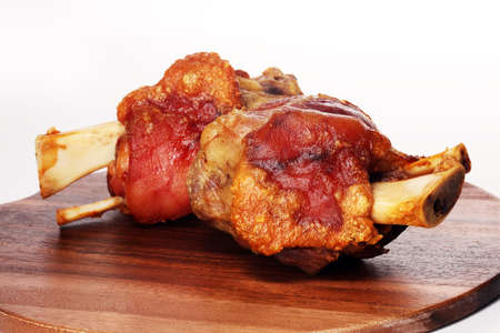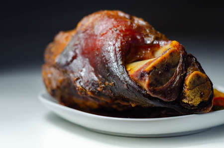 Roasted pork knuckle. Ham and bacon are popular foods in the west. German Schweinshaxe or Haxe