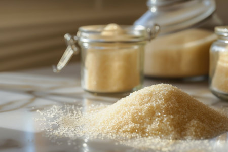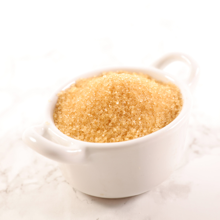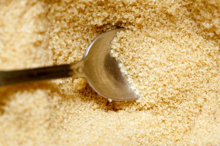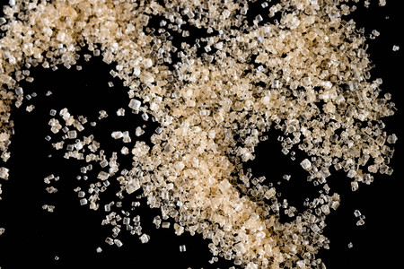 Brown sugar crystals, light view. Used to sweeten desserts and drinks, it is obtained from sugar cane and beets.