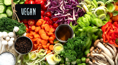 Vegan Lifestyle Essentials with Fresh Produce and Books