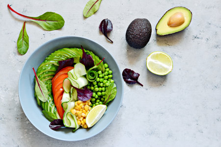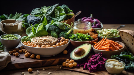 A variety of fresh ingredients ready to be assembled into a vegan Buddha bowl, highlighting a balanced and nutritious meal.