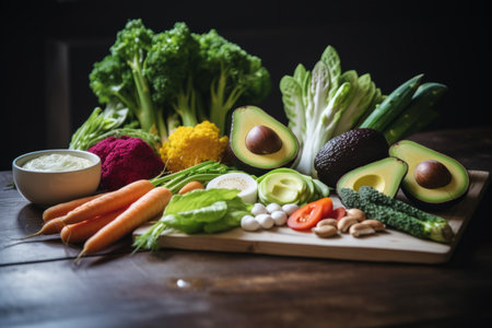 fresh ingredients displayed on a board, created with generative ai
