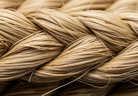 Natural beige braided rope texture captured in extreme macro detail. intricate weave pattern highlights the strength and structure of the individual fibers. suitable for backgrounds or material concepts.