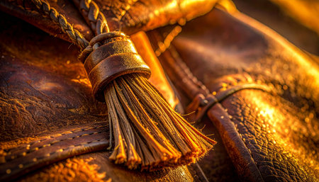 In the warm, ambient glow of a study, a golden tassel rests against rich, textured leather.