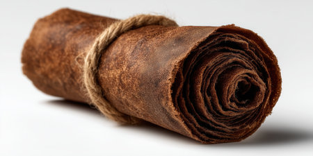 A detailed shot of a cinnamon stick slowly peeling into delicate curls.