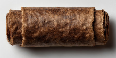 Dark brown textured sheet with torn edge on dark surface