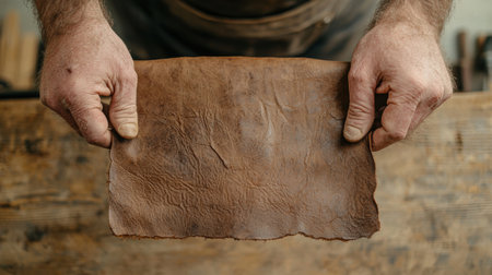 Hands working with leather material