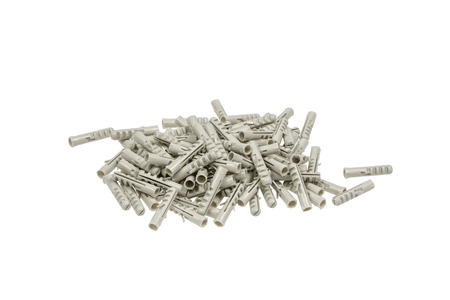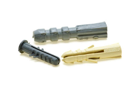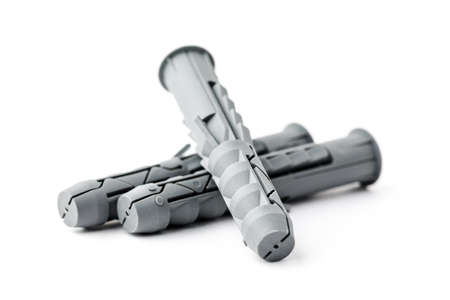Plastic dowels isolated on white background. Wall plug, screw anchor, construction tools.