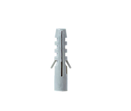 Plastic wall anchor plug isolated on white. Useful concept photo for DIY, home improvement, or construction materials.