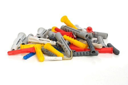 many plastic cleat, wall plug - also known as screw anchor, construction tools