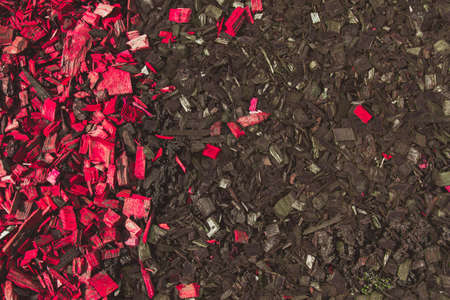 Decorative red wood shavings are painted. Colorful summer and autumn background