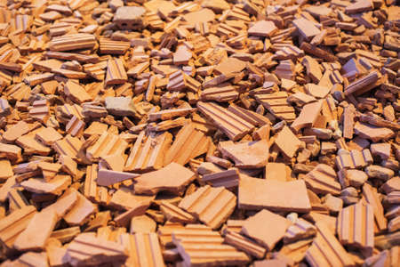 Repair of the road surface. A pile of stones made of old asphalt lies on the road. Textured abstract background. Close-up