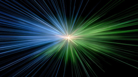 A vibrant blue and green light rays burst outward, creating dynamic and energetic visual effect against dark background. this captivating display evokes sense of excitement and wonder