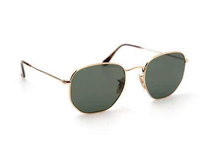 BANGKOK, THAILAND - AUGUST 24, 2016: The Ray-Ban Caravan with gold frame and classic G-15 Lens. Ray-Ban is a brand of sunglasses and eyeglasses founded in 1937 by American company Bausch & Lomb.