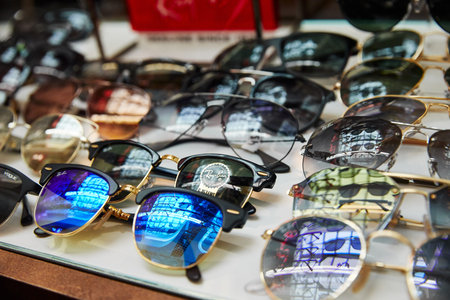 Moscow, Russia, 02.02.2019: Beautiful ray-ban sunglasses on display, great design