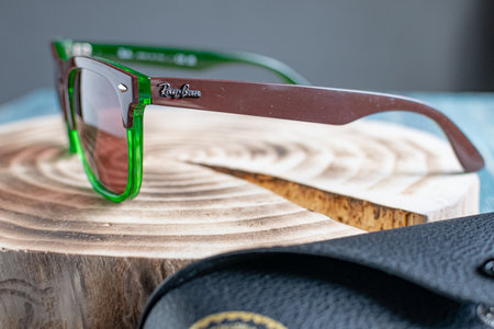 Ray-Ban sunglasses in green plastic frame. Popular and fashionable accessory