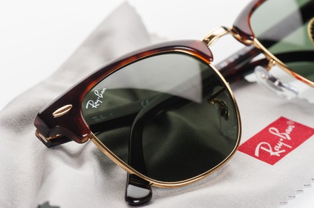 BANGKOK, THAILAND - DECEMBER 16, 2015: The Ray-Ban Club Master RB3016 W0366 -Tortoise. Ray-Ban is a brand of sunglasses and eyeglasses founded in 1937 by American company Bausch & Lomb.