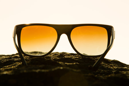 Men's sun glasses on yellow background