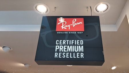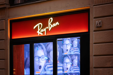 Picture of the Ray Ban sign with their logo on their retailer in Belgrade. Ray Ban is an Ita