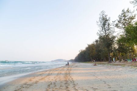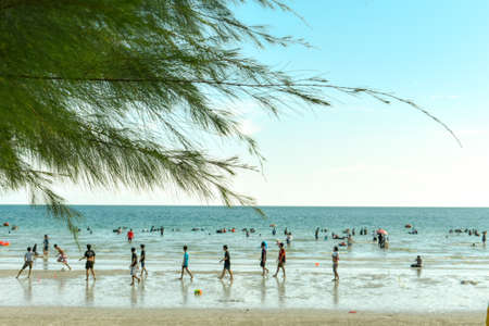 People walk on the beach and swimming at Nam Sai Beach, Sattahip Thailand..