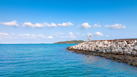 Seascape of tropical sea in Thailand with a blue sky and sea,ship,lighthouse tower