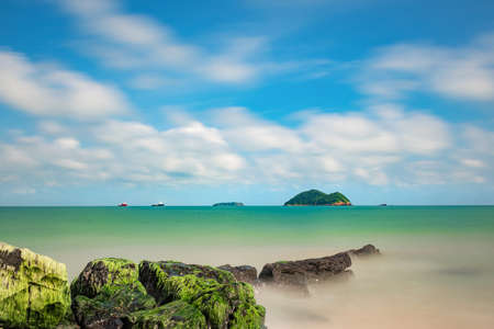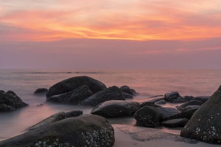 Sea and rock at the sunset Nature composition under long exposure at Rayong Thailand
