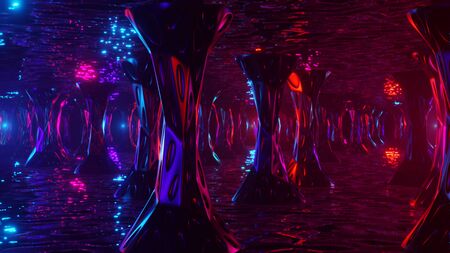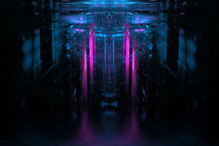 Abstract futuristic background bright neon color. Glowing elements of the building and background, digital future, fantasy. Digital technologies in design. 3d rendering