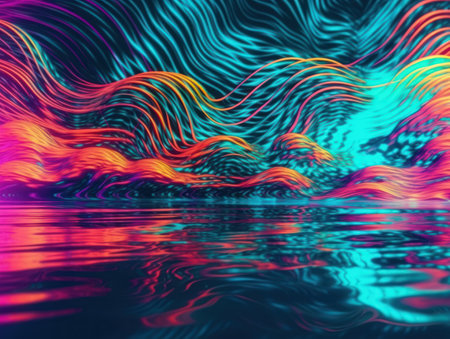 Neon lights Chromatic Holographic liquid dynamic shapes on dark background Created with Generative AI technology