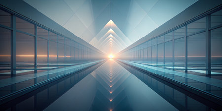 technical triangle space ship hangar tunnel corridor with glass windows 3d illustrations graphics artworks background wallpaper, futuristic sci-fi space tunnel 3d rendering design