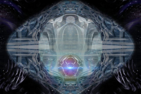 Space alien city. Virtual reality environment. 3d render. Abstract psychedelic background.