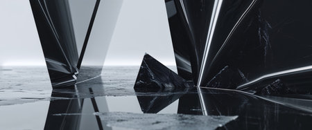 AI Generated. Polished obsidian background with sharp reflections for modern design