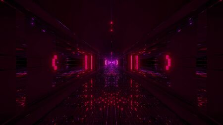 Futuristic tunnel corridor with glowing lights and reflections 3d rendering