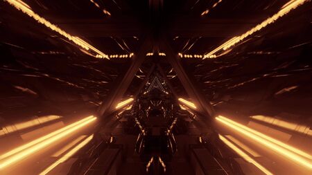Golden cool science fiction sci-fi space tunnel 3d illustration design background wallpaper artwork