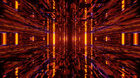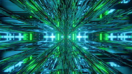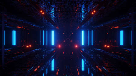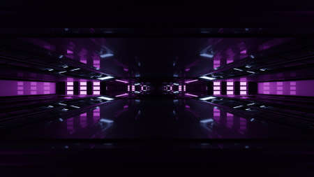 3D illustration of 4K UHD sci fi passage with symmetric neon rays