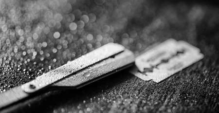 macro photo of old fashion shave blades