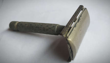 old razor shaving blade on white background