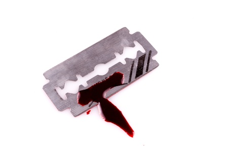 razor with drop of blood on white background