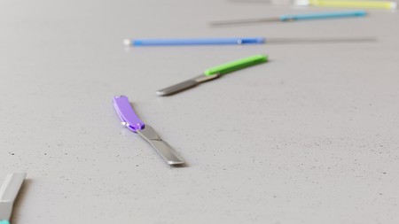 Utility pink knives for paper cut and hand craft on color background.
