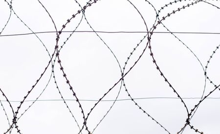 Steel twisted barbed wire. The concept of freedom and a better life on the other side.