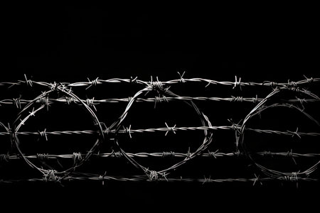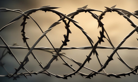 barbed wire against a neutral gray background, evoking feelings of confinement and restriction