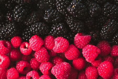 Fresh blackberries and raspberries background with ripe berries
