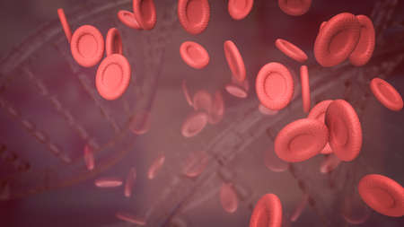 Red blood cell flowing in vein or artery. 3d render. Healthcare and medical zoom concept.