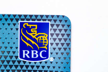 Calgary Alberta, Canada. July 25, 2020. A Macro close up to the RBC logo on a credit card.