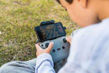 Remote Control Drone Hobby Leisure Entertainment Technology Innovation Concept. installation of the joystick